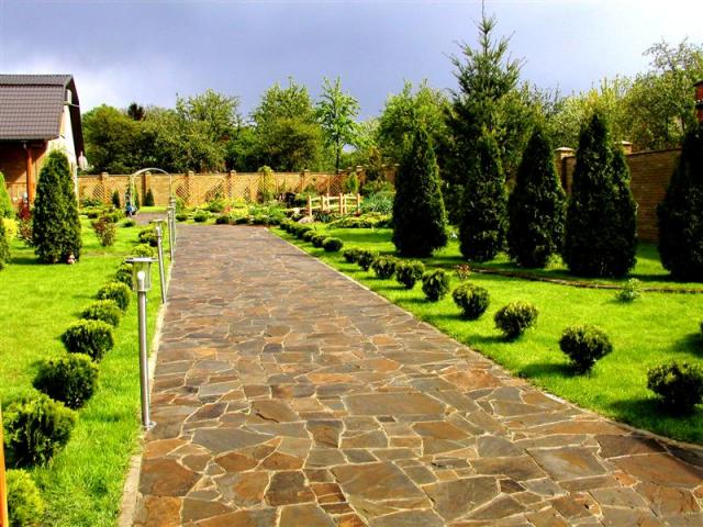lempengan tipis digunakan untuk menghadap permukaan vertikal, lempeng batu pasir dengan ketebalan rata-rata cocok untuk paving jalan setapak dan untuk area buta, dan batu tebal digunakan sebagai bilik konstruksi, untuk konstruksi dinding penahan dan pagar. batu nisan tebal dengan ukuran besar juga digunakan untuk pengerasan jalan setapak demi selangkah. dan juga batu pasir coklat sangat cocok dengan desain lansekap, dari piring dimungkinkan untuk membangun tempat tidur bunga atau tempat tidur bunga, untuk benda-benda dekoratif oblitsevat, untuk digunakan pada pembangunan taman batu.
